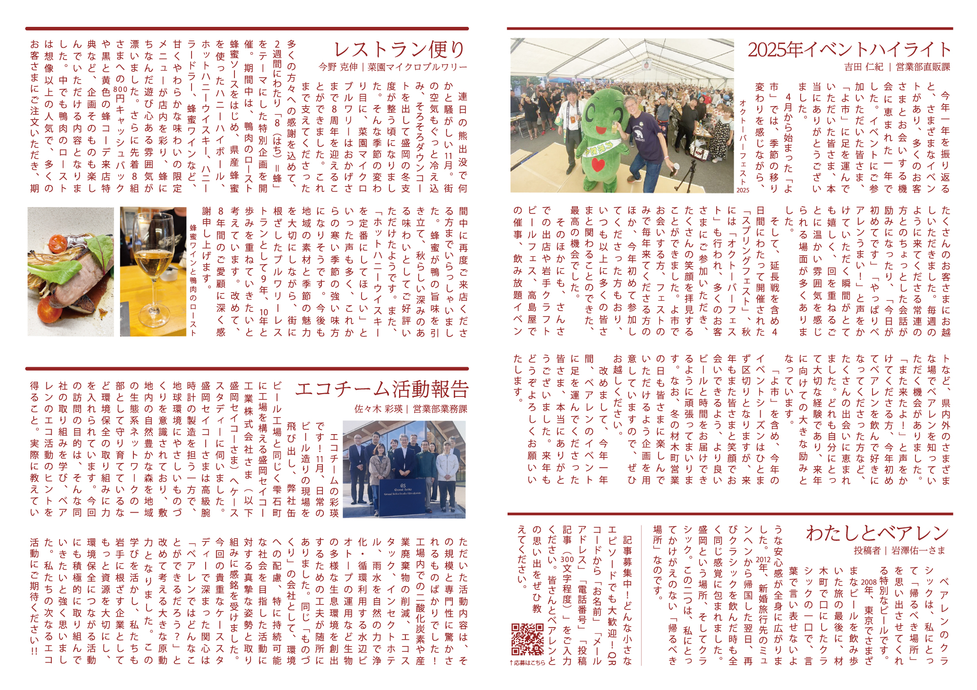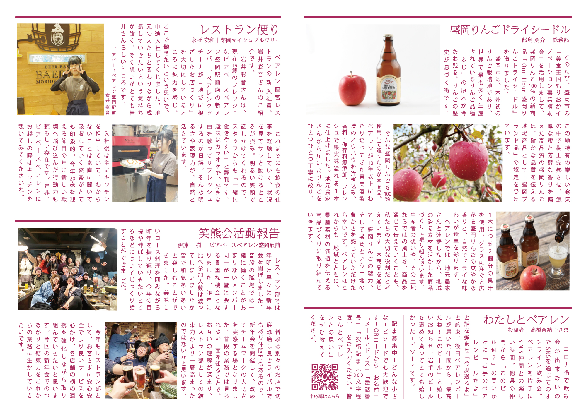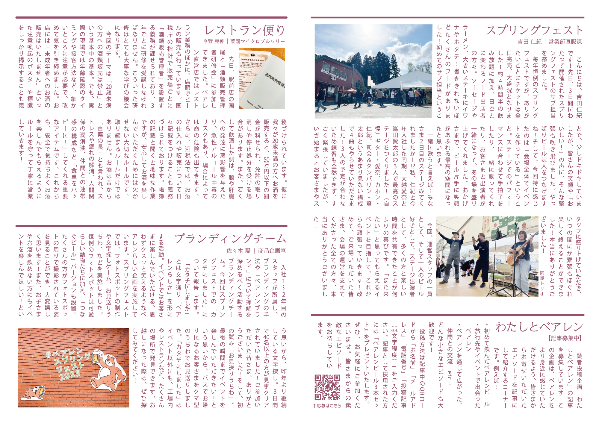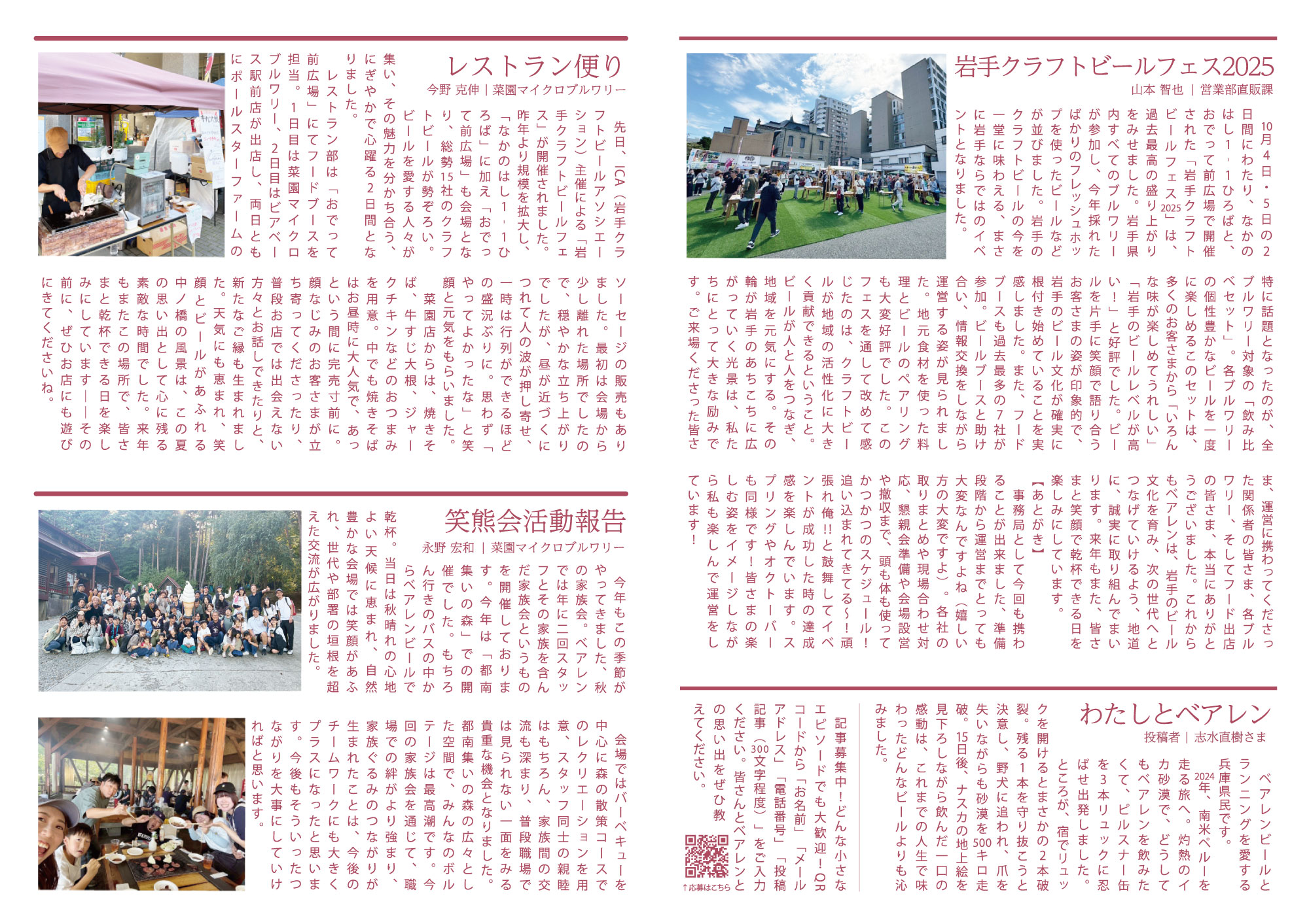| 記事中の “わたしとベアレン” への ご応募URLはこちらです。 | |