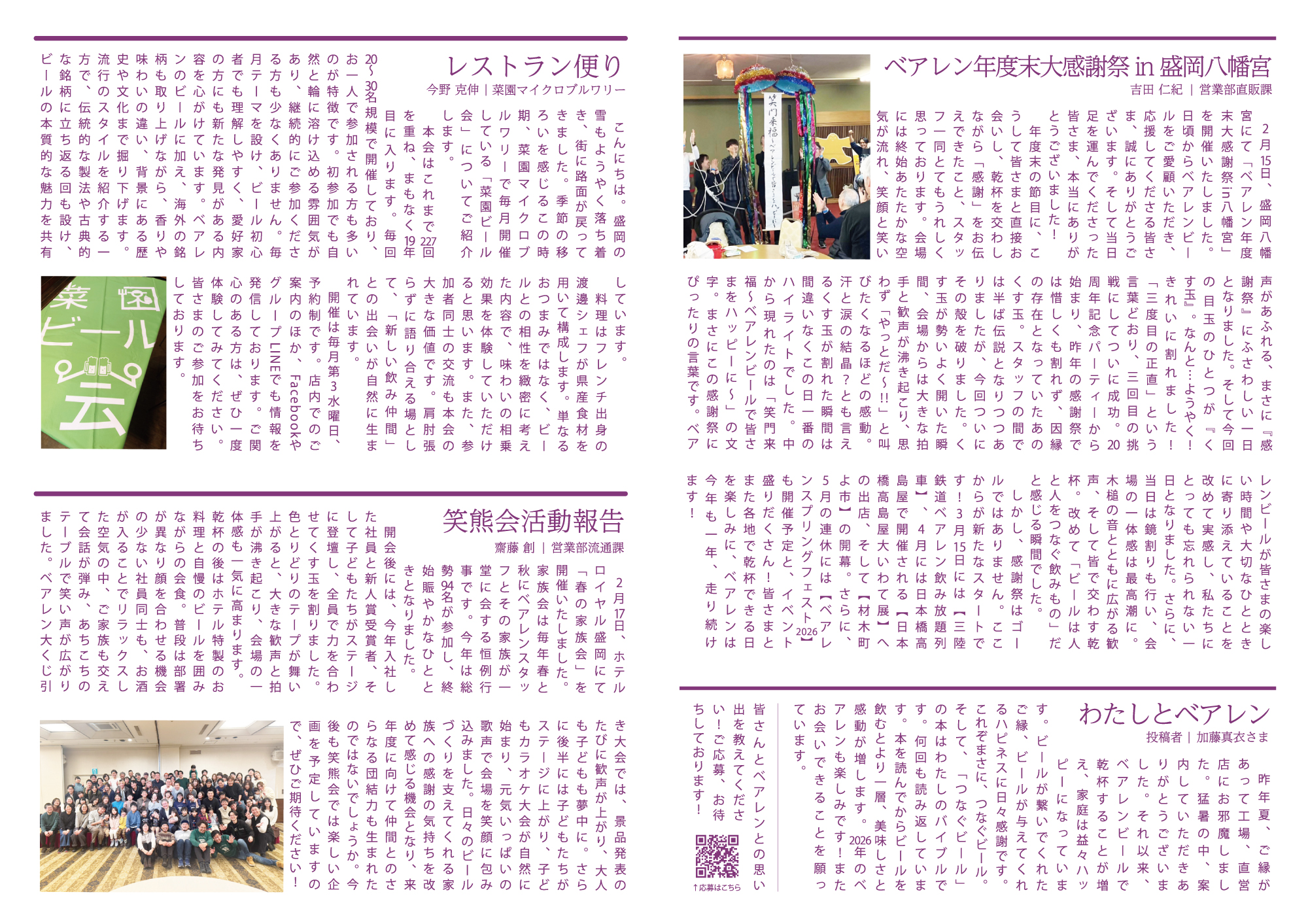 | 記事中の “わたしとベアレン” への ご応募URLはこちらです。 | |